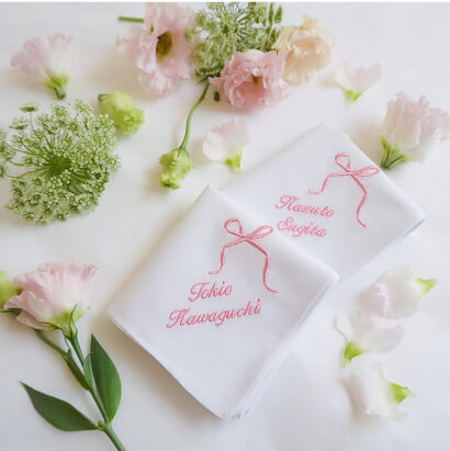 BetterTogetherは過去に沢山のお二人だけのハンカチを制作させていただいております。